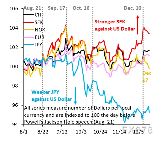 上图揭示了问题的本质。日元(蓝色)兑美元持续暴跌,抵消了瑞典克朗(红色)和瑞士法郎(黑色)等其他货币的升值影响。这意味着资金流出美元转向贵金属的同时,也涌向了避险货币。